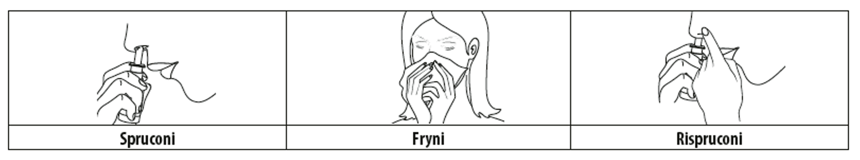 Dozimi për të rriturit dhe të rinjtë mbi 12 vjeç: spërkatni 2 herë në çdo zgavër hunde, fryni hundët dhe përsëritni aplikimin.